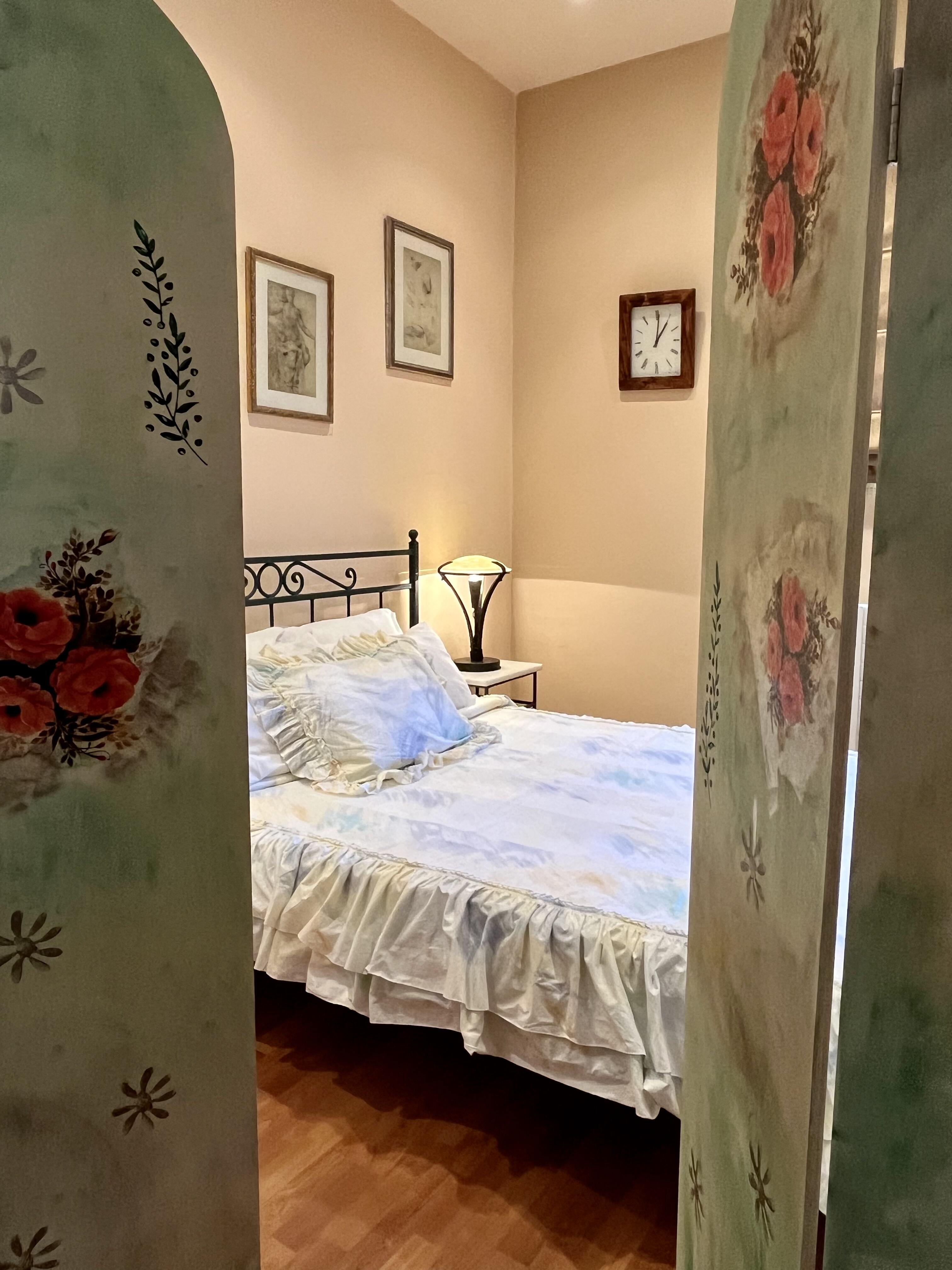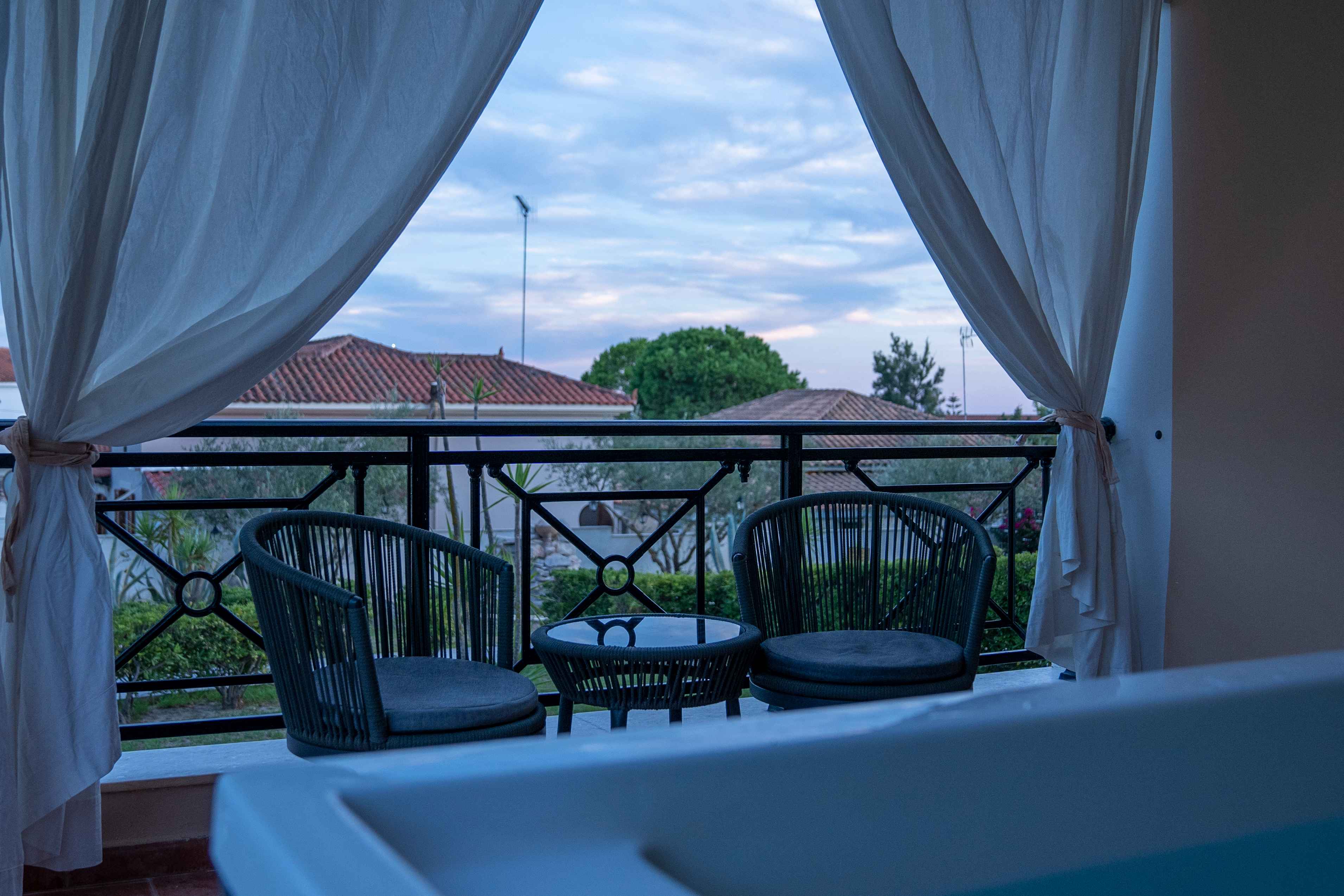 It accommodates up to 4 people and has a balcony with an outside spa-mini pool viewing the garden of “Anagenessis Resort” and the mountains all around; here, our guests have the option of a hydromassage, an air massage, a chromotherapy or a an aromatherapy. The decoration of the balcony seating area, as well as the rest of the interior furniture, is made of high value antiques with a traditional and cottage feel.